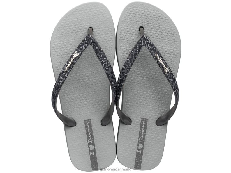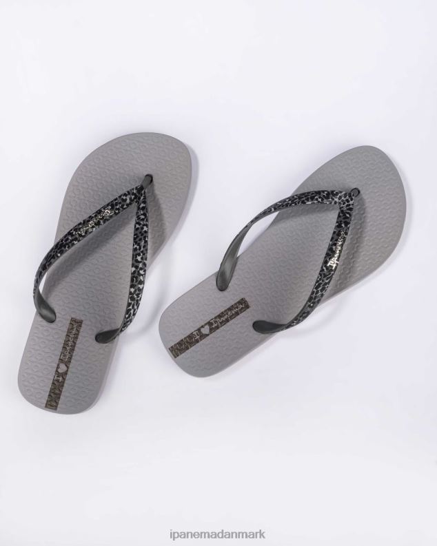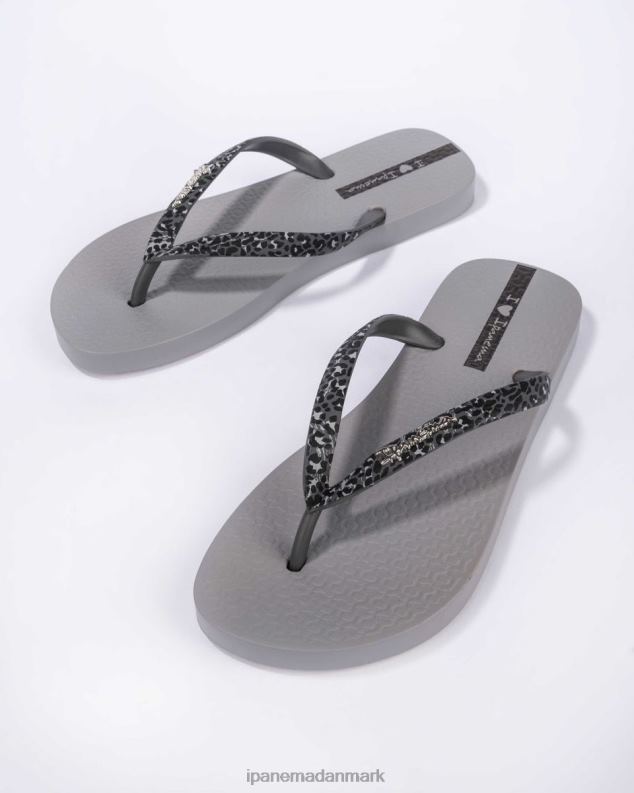 dunadyret er en almindelig og enkel flip flop, lavet vidunderligt med leopardprintede stropper og et sølv ipanema-logo på udstilling! vist her i gråt.