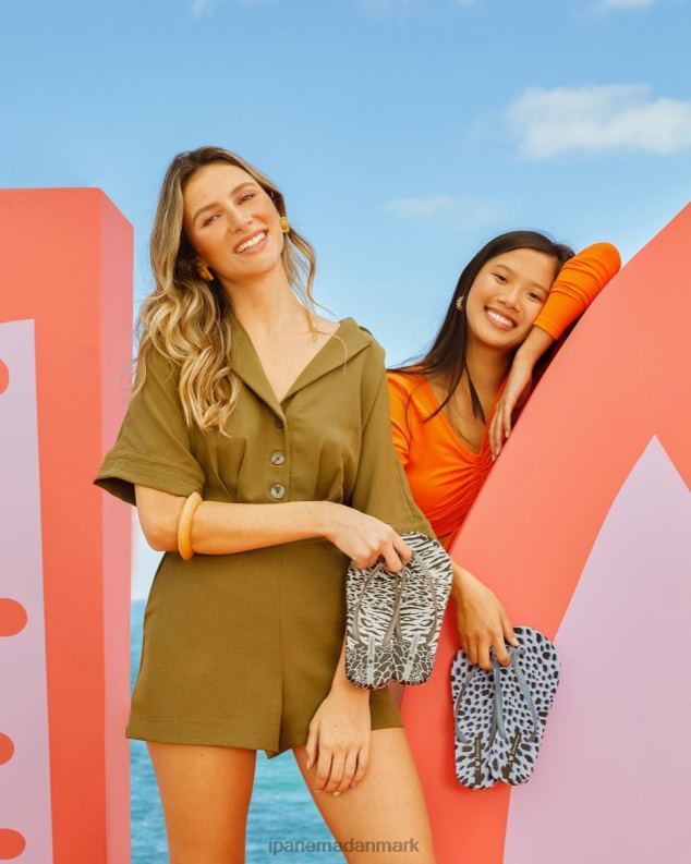 til dyreelskere! vi har giraf, tiger, leopard (selvfølgelig!) og - ja, vi er ikke sikre på, hvad der ellers er vist der! det fantastiske dyreprint på fodsengen matchet med en blank string-rem prydet med et diskret ipanema-logo på stropperne, der ser godt ud i tan!
