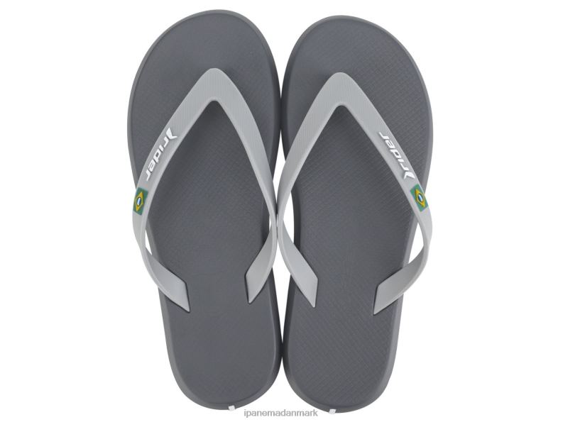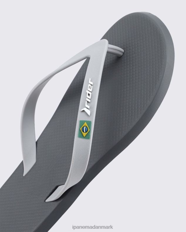 rider's r1 er den klassiske thong flip flop, der aldrig går på kompromis med stil eller komfort. med rytterlogoet på stroppen og hylder deres rødder prydet med et lille brasiliansk flag, er disse sandaler perfektion. ses her i grå - en ny farvevariant for denne sæson.